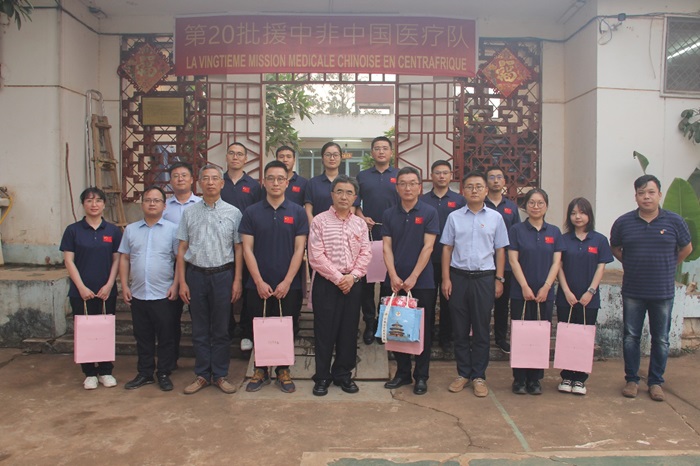 第20批援中非中国医疗队来自浙江台州,于2023年12月20日抵达中非班吉,旋即投入援外医疗工作,以精湛的医术、优质的服务、奋进的姿态迅速赢得中非政府和各界广泛赞誉。座谈会结束后,使馆还向各位队员发放“温暖迎春”活动慰问品,转达党和政府对他们的亲切关怀。同志们深表感动,纷纷在“不畏艰险、甘于奉献、救死扶伤、大爱无疆”的标语前立下铮铮誓言:守正创新、载誉前行、勇立新功,不断为中国中非铁杆友谊大厦增砖添瓦,为构建人类卫生健康共同体持续汇聚新的力量。